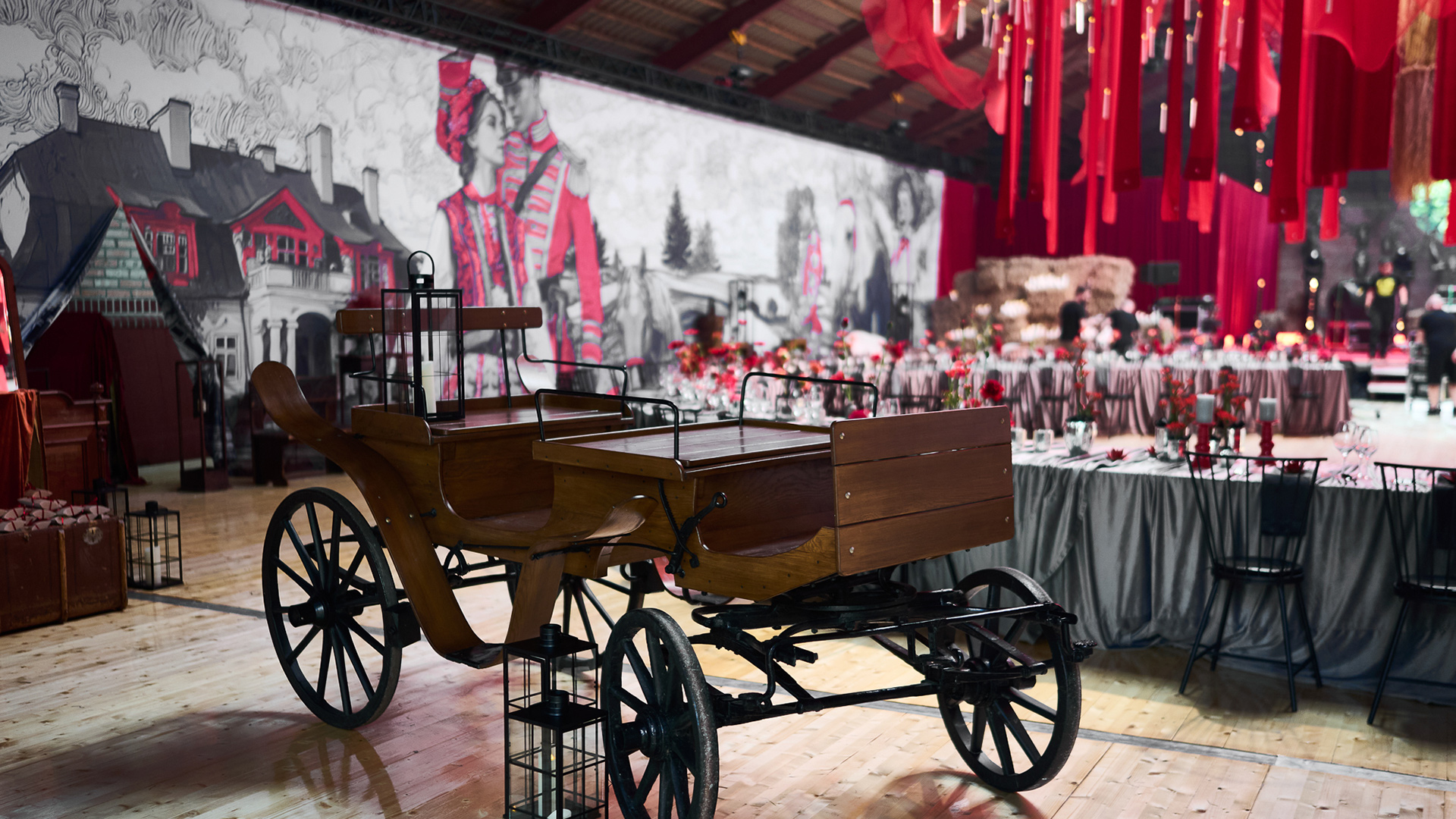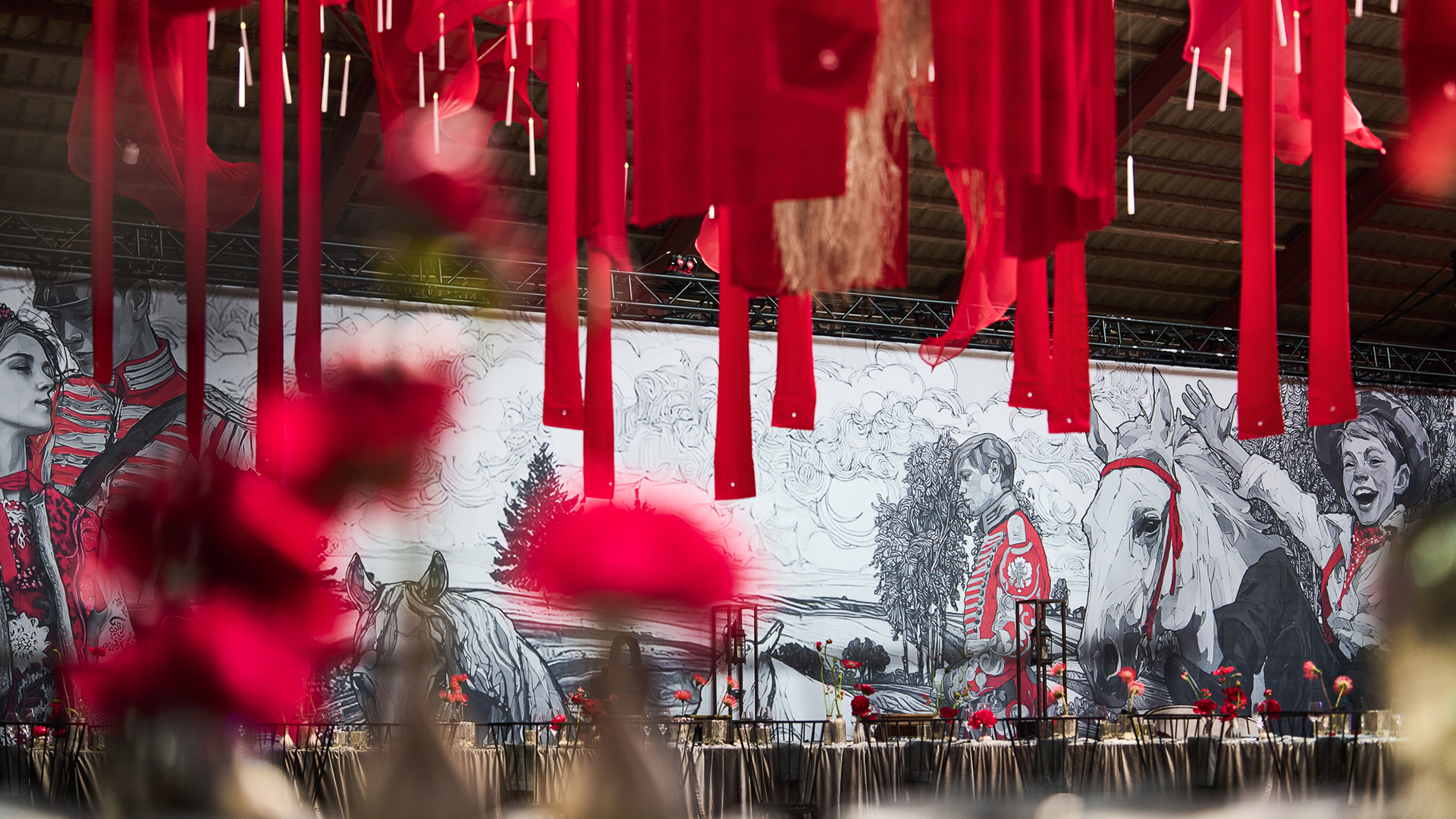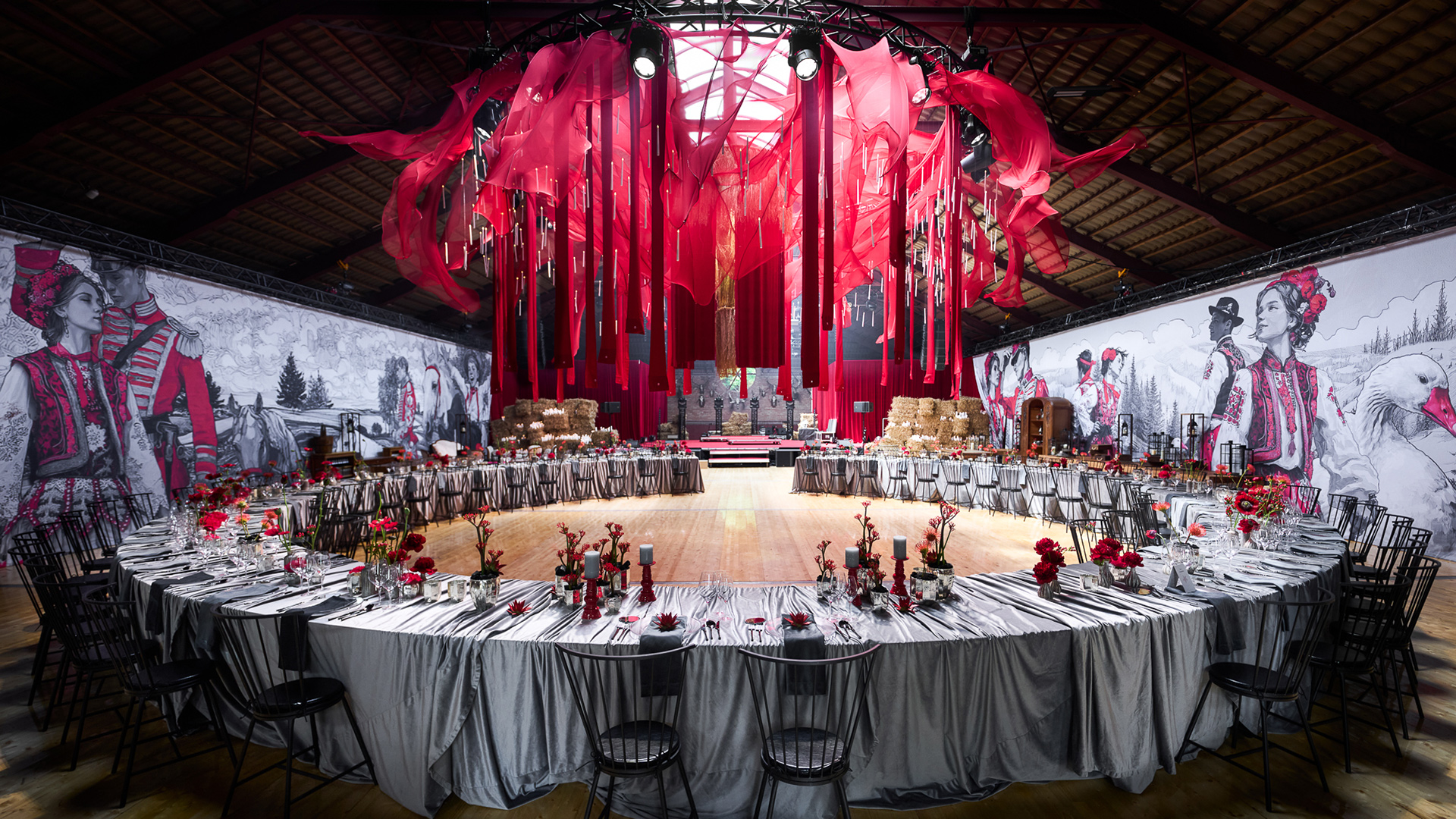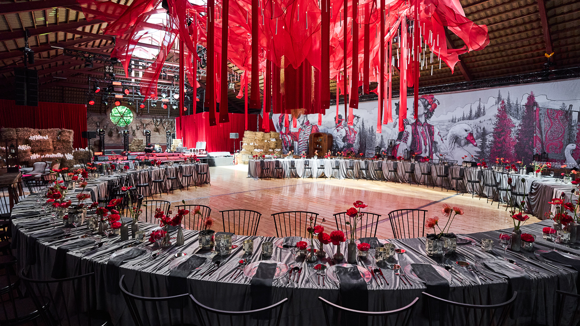 Kultura staropolska i kultura góralska, mężczyzna i kobieta oraz ich wspólne urodziny. Czy to da się pogodzić? Opracowanie graficzne było kluczowe w tym projekcie, gdzie wszystkie ściany otoczyła historia każdego z jubilatów. Wielki, okrągły stół scalił wszystkich gości a podwieszenie podkreślało uroczysty charakter przyjęcia. Grafit i czerwień, spokój i energia