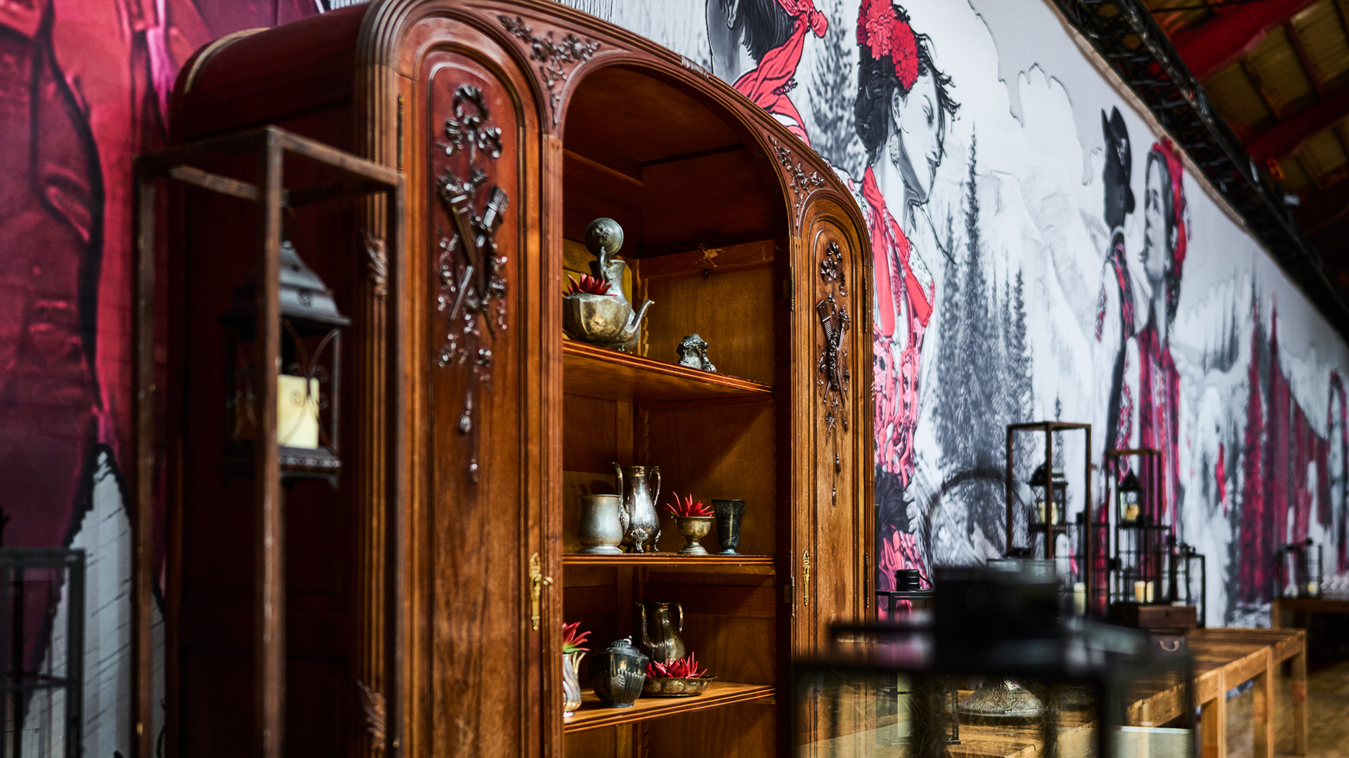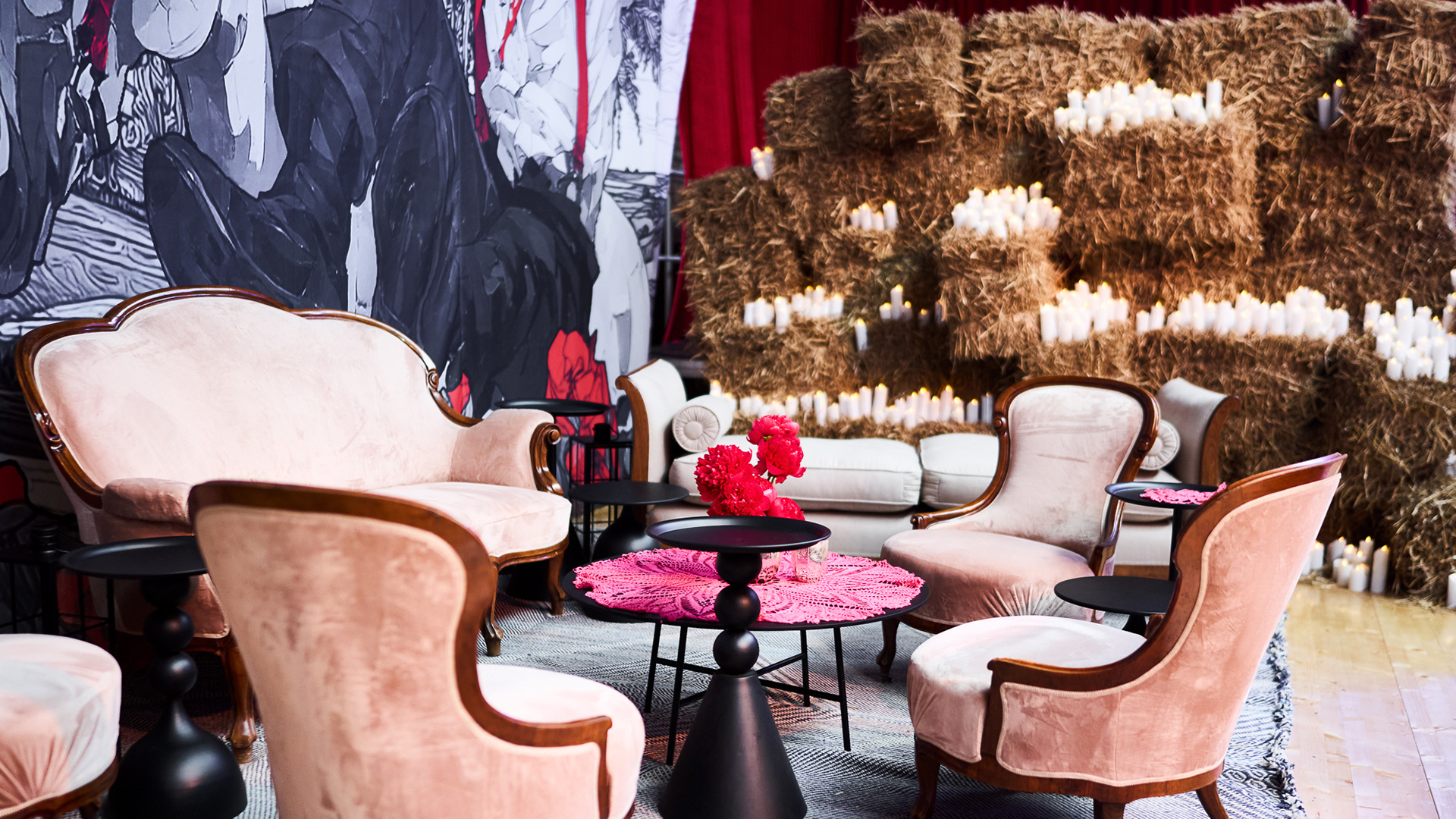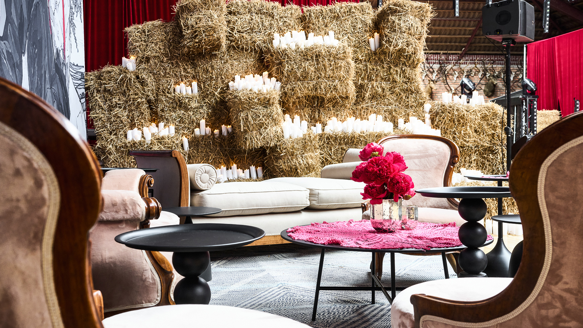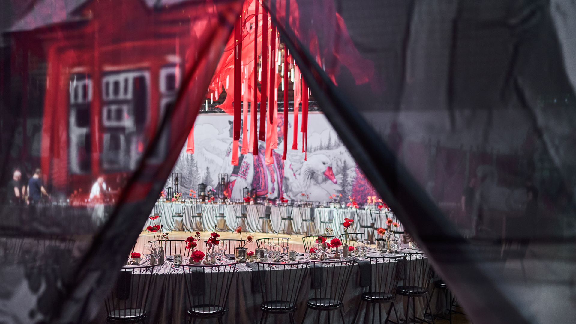 Kultura staropolska i kultura góralska, mężczyzna i kobieta oraz ich wspólne urodziny. Czy to da się pogodzić? Opracowanie graficzne było kluczowe w tym projekcie, gdzie wszystkie ściany otoczyła historia każdego z jubilatów. Wielki, okrągły stół scalił wszystkich gości a podwieszenie podkreślało uroczysty charakter przyjęcia. Grafit i czerwień, spokój i energia