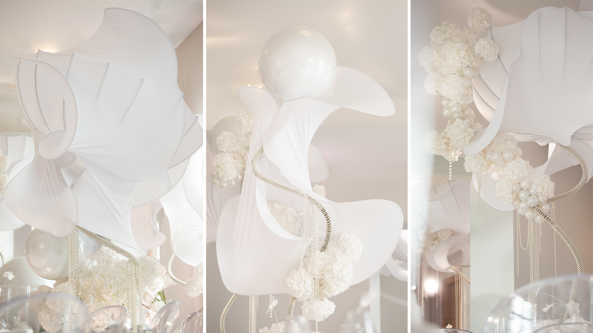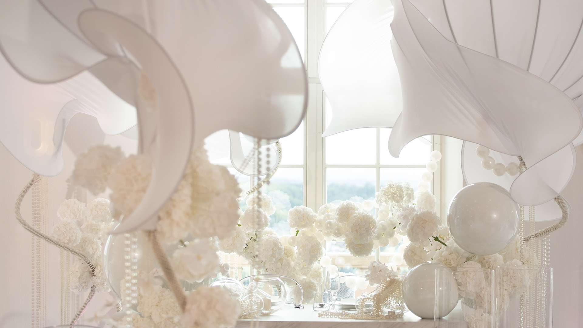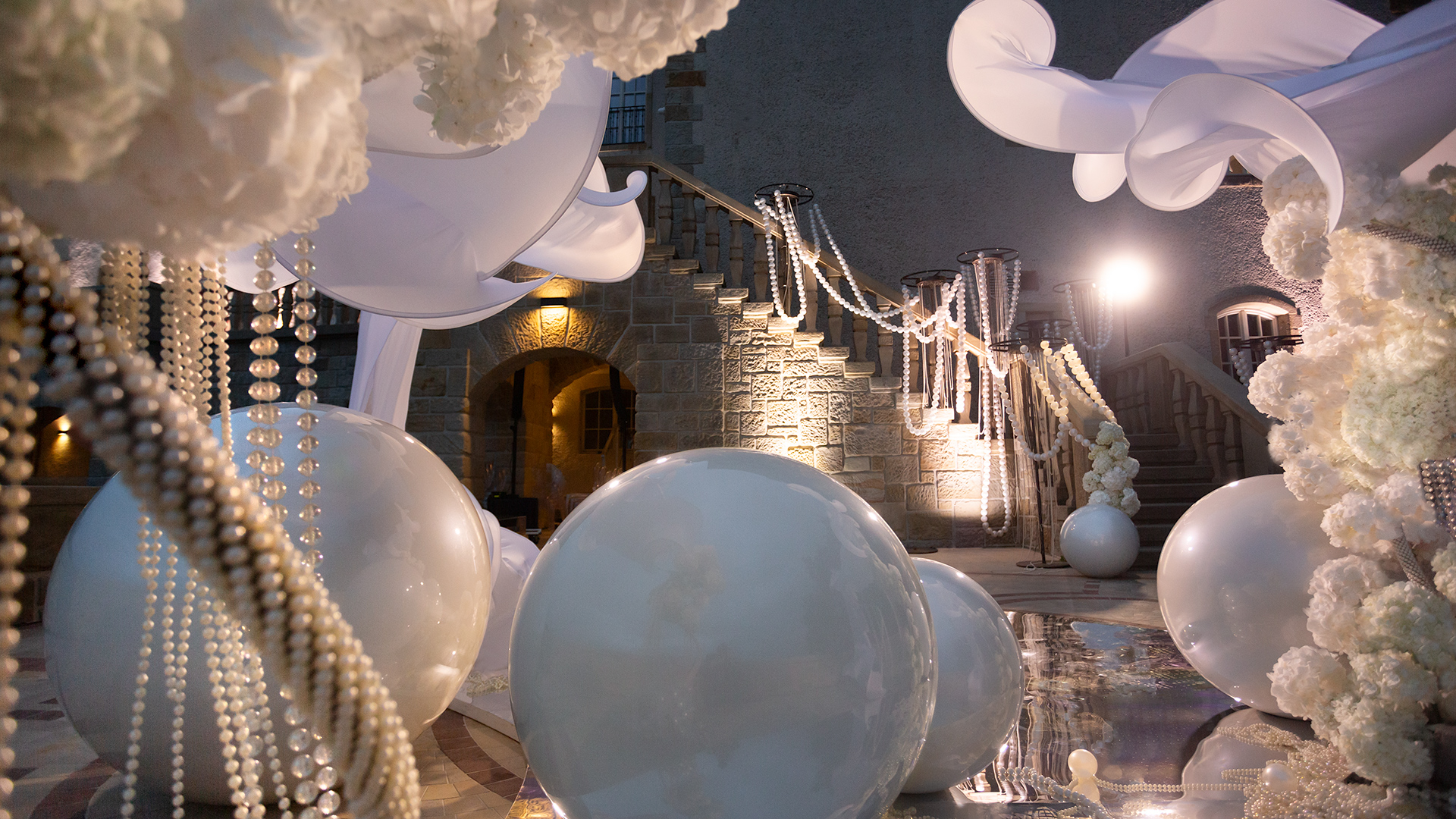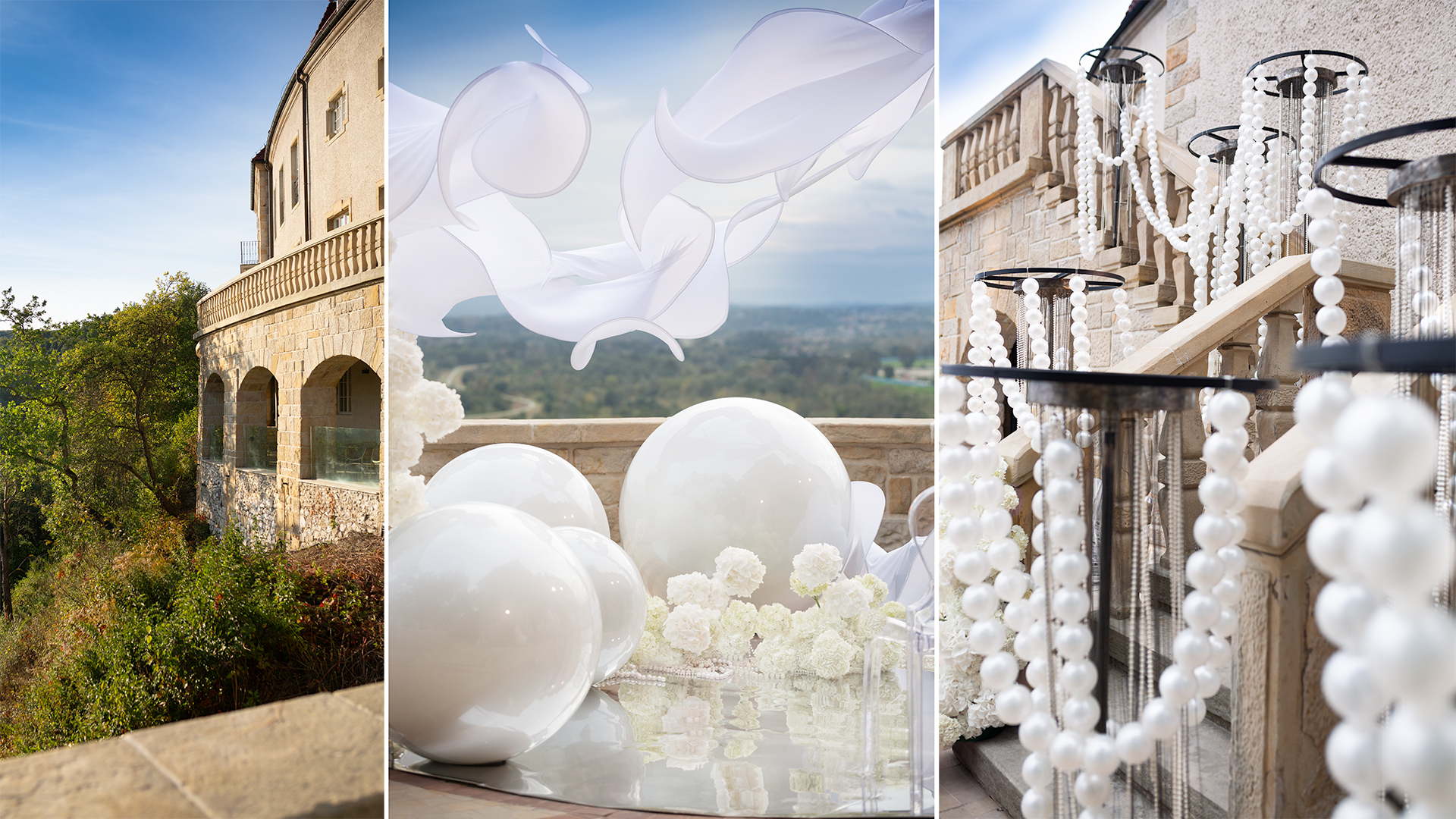 Artystyczny projekt wpisany w czystą biel, oparty o luksusowe tkaniny i ponadczasowe piękno szlachetnych pereł, delikatnego symbolu czystości i niewinności. Intrygująca stylizacja dopasowana do przepastnych zamkowych przestrzeni.