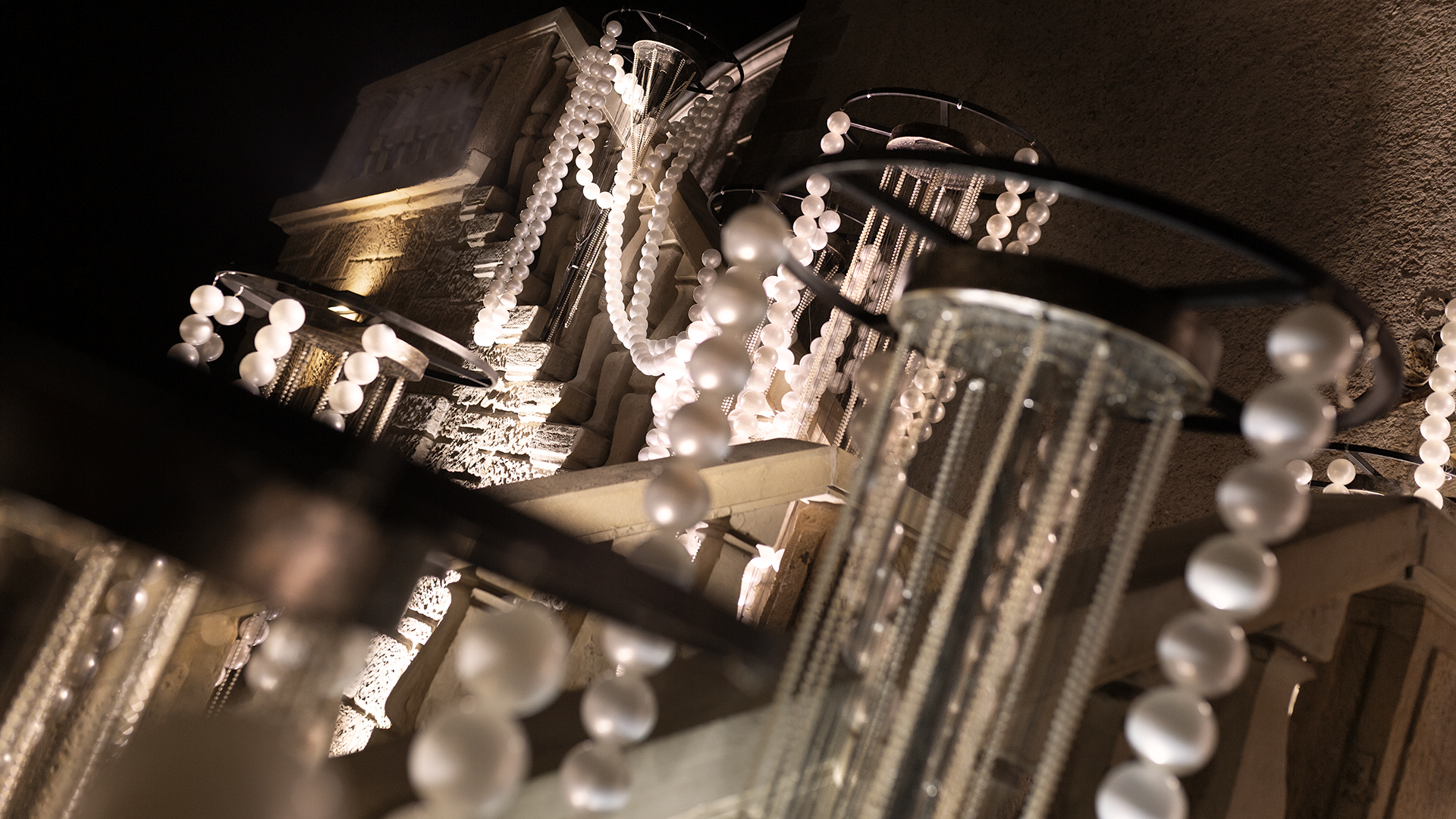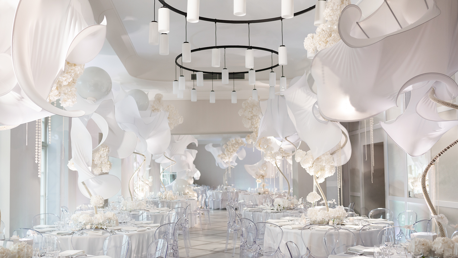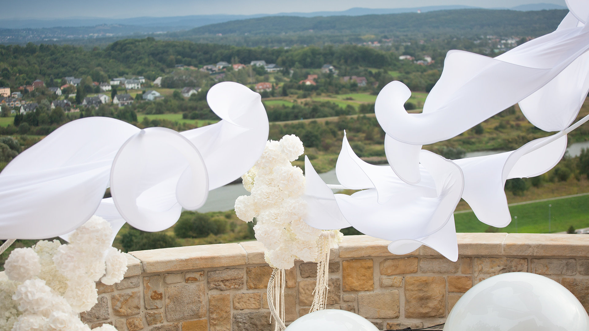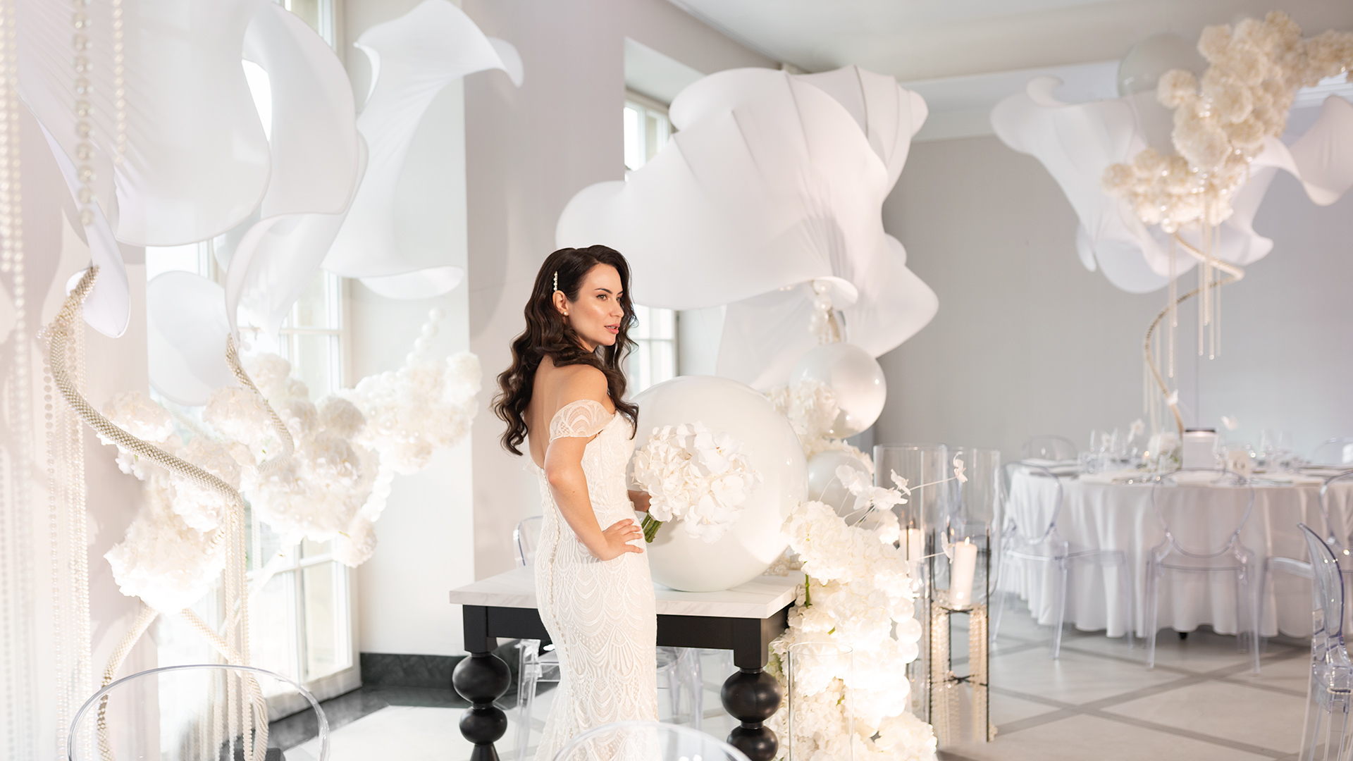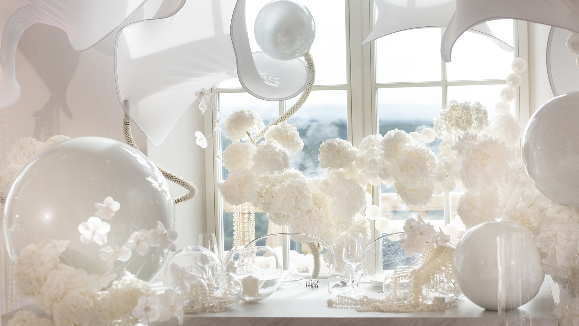 Artystyczny projekt wpisany w czystą biel, oparty o luksusowe tkaniny i ponadczasowe piękno szlachetnych pereł, delikatnego symbolu czystości i niewinności. Intrygująca stylizacja dopasowana do przepastnych zamkowych przestrzeni.
