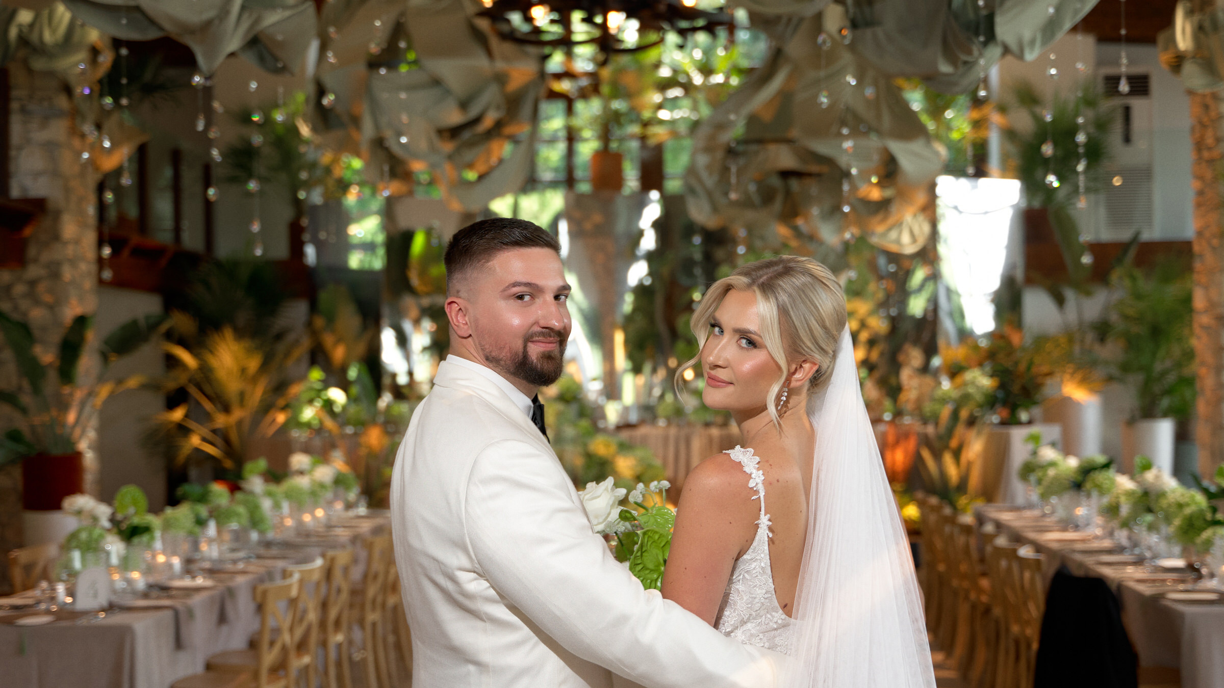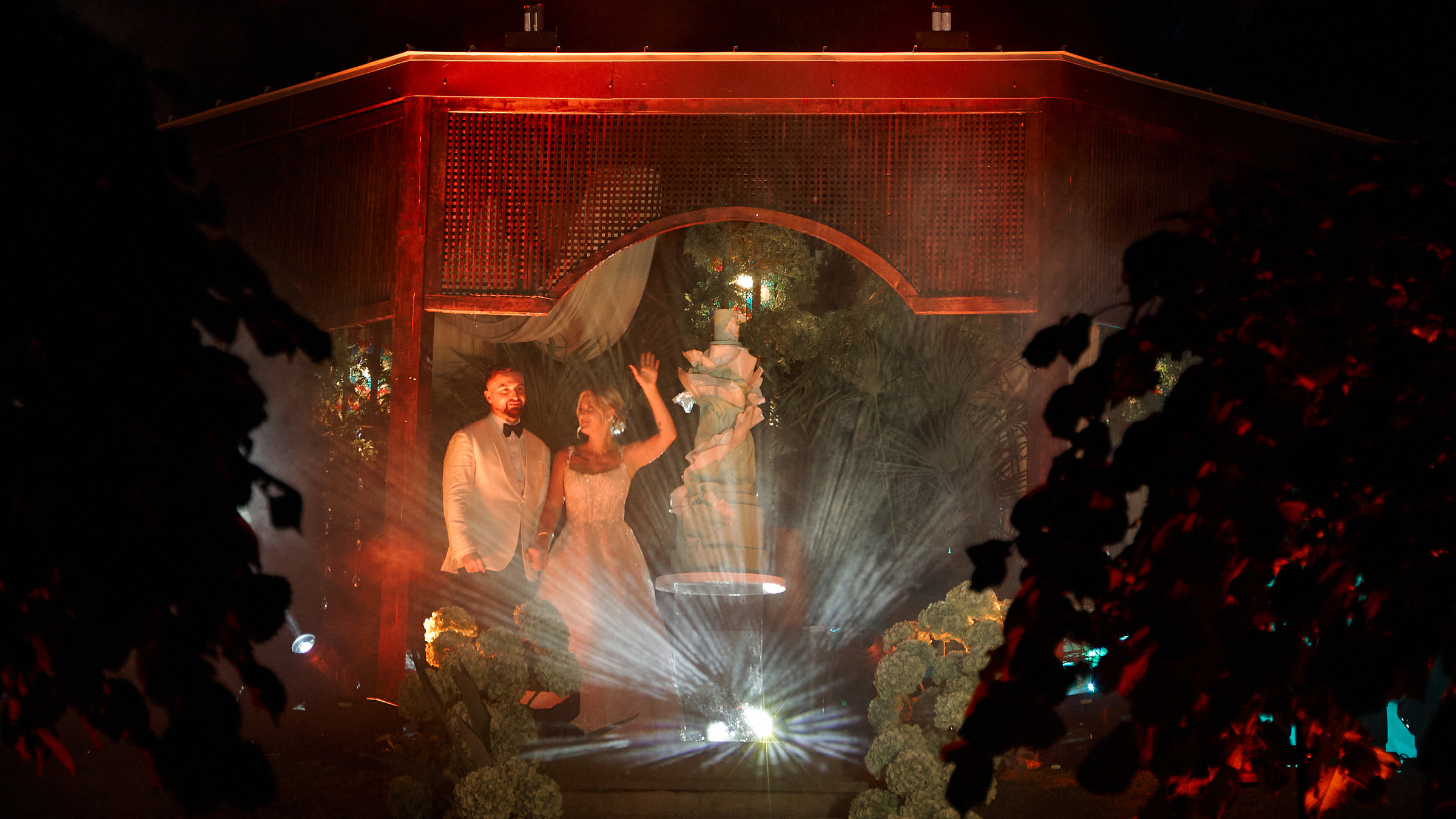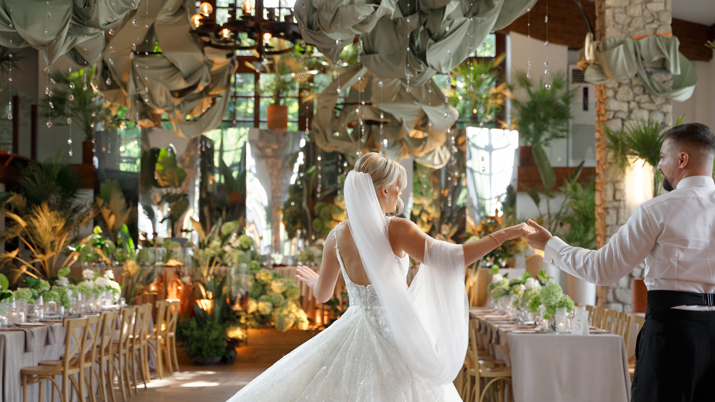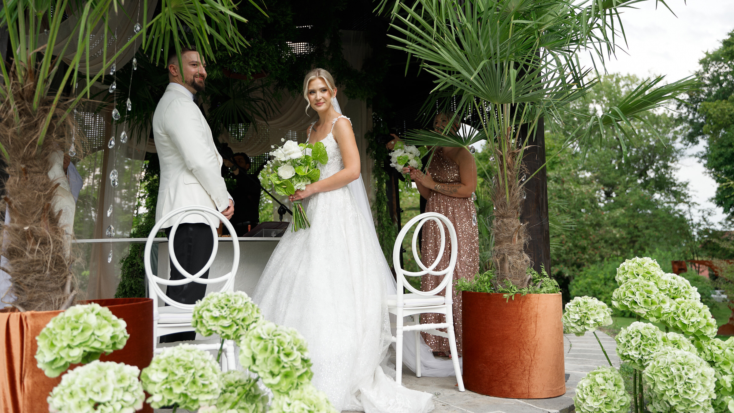 Napój orzeźwiający, kojarzący się nieco z tropikami, zieleń i czekolada oraz pomarańcz zachodzącego słońca – brzmi smacznie. Projekt przeznaczony do dużej, wysokiej i monumentalnej Sali. Zakątki, zakamarki, strefy – przypominające lobby jakiegoś niezwykłego egzotycznego hotelu. Kwiaty luksusowe, obrusy i dodatki również.