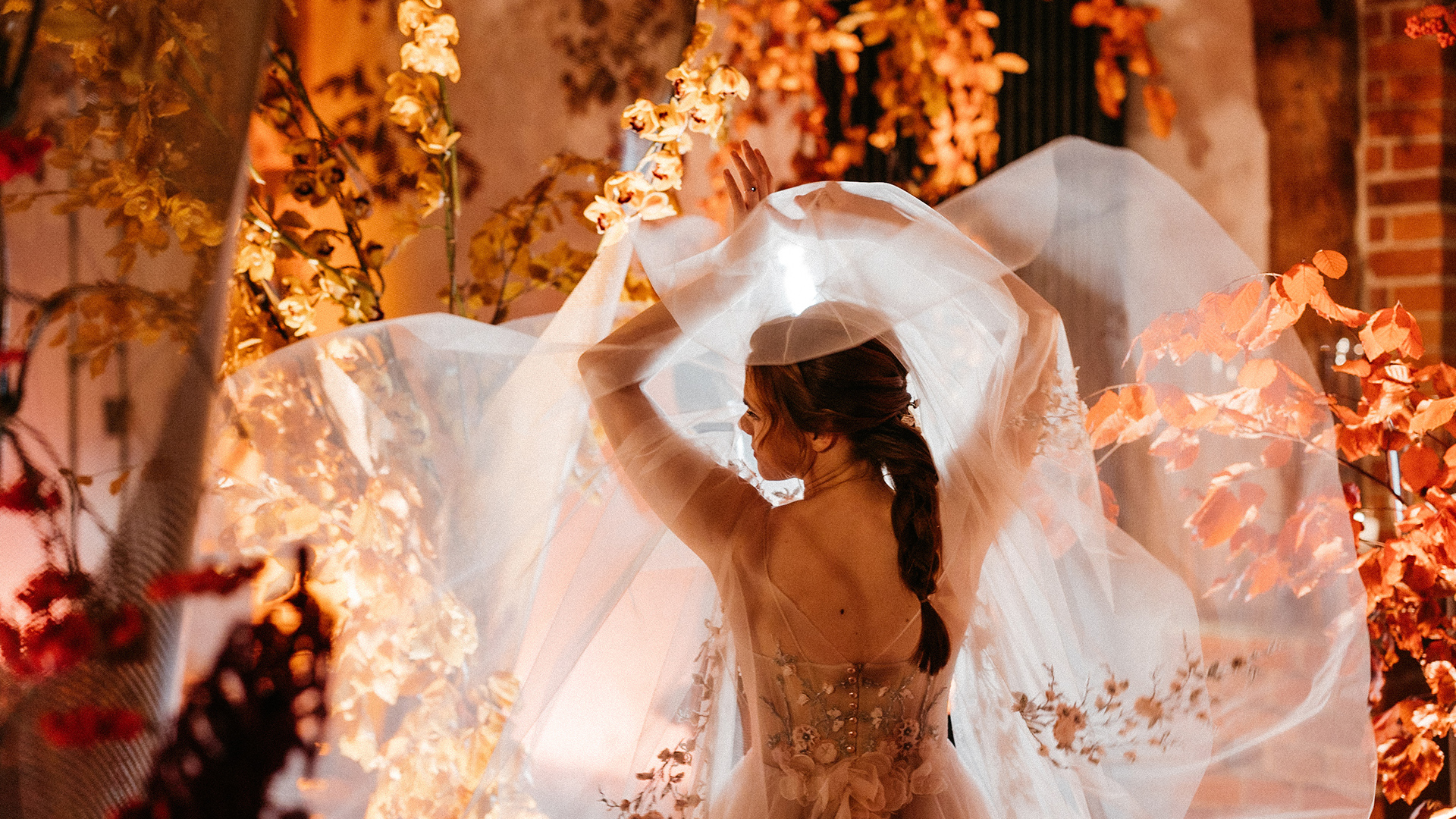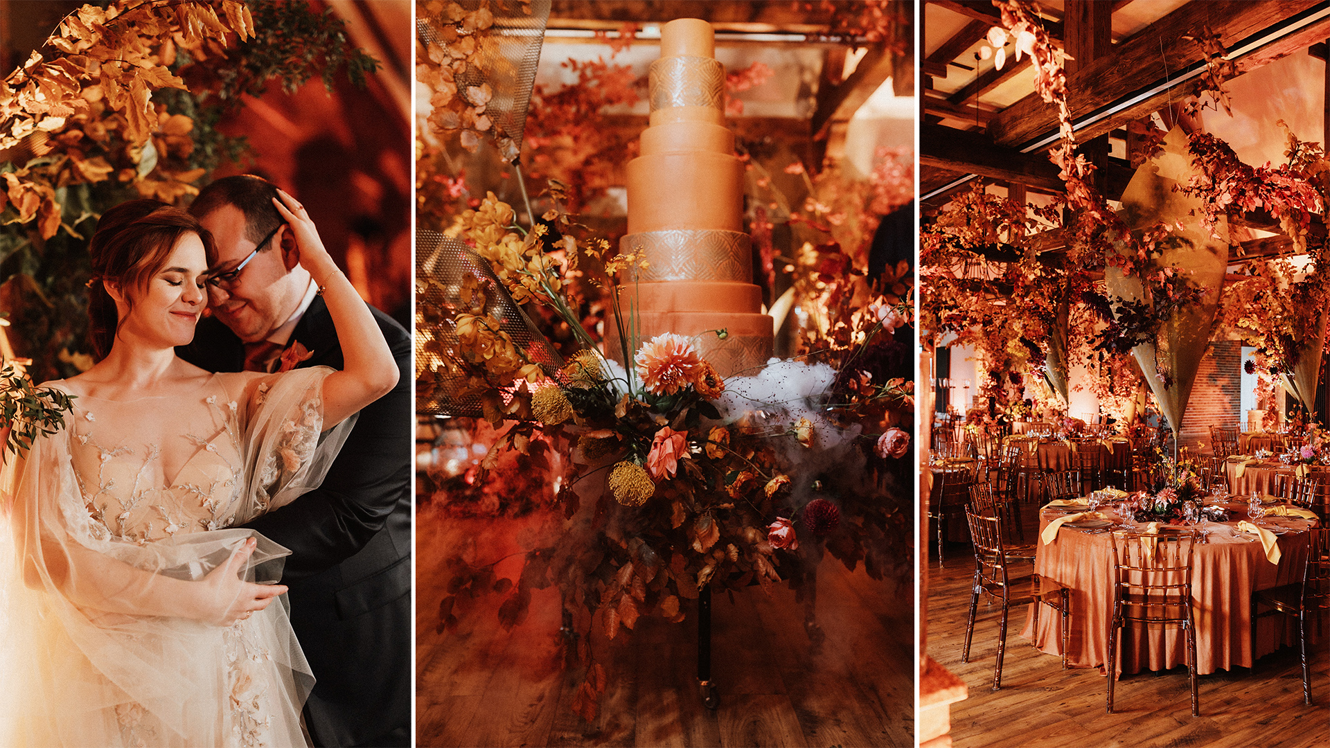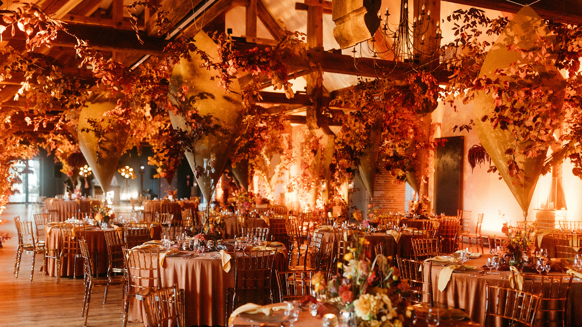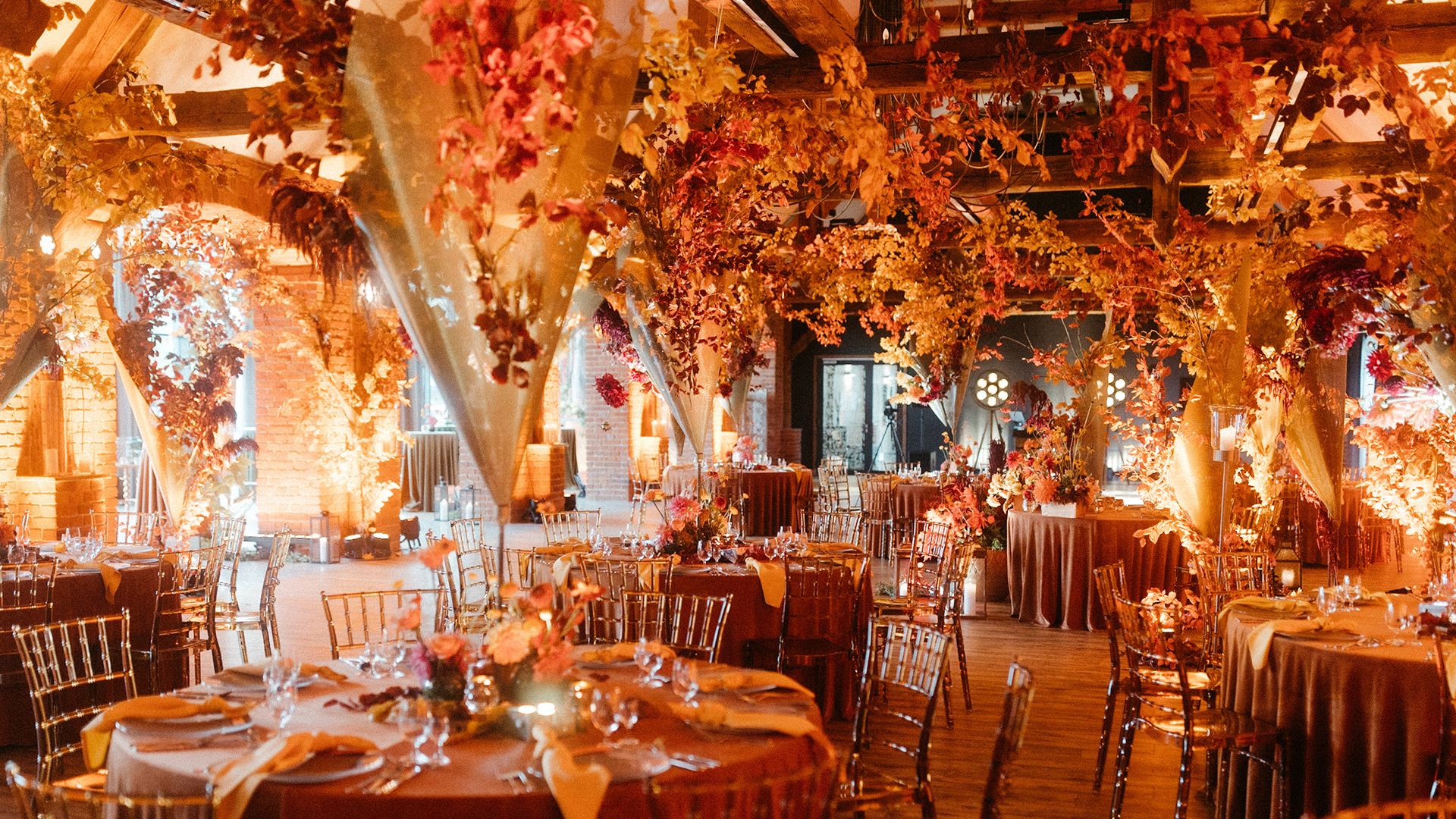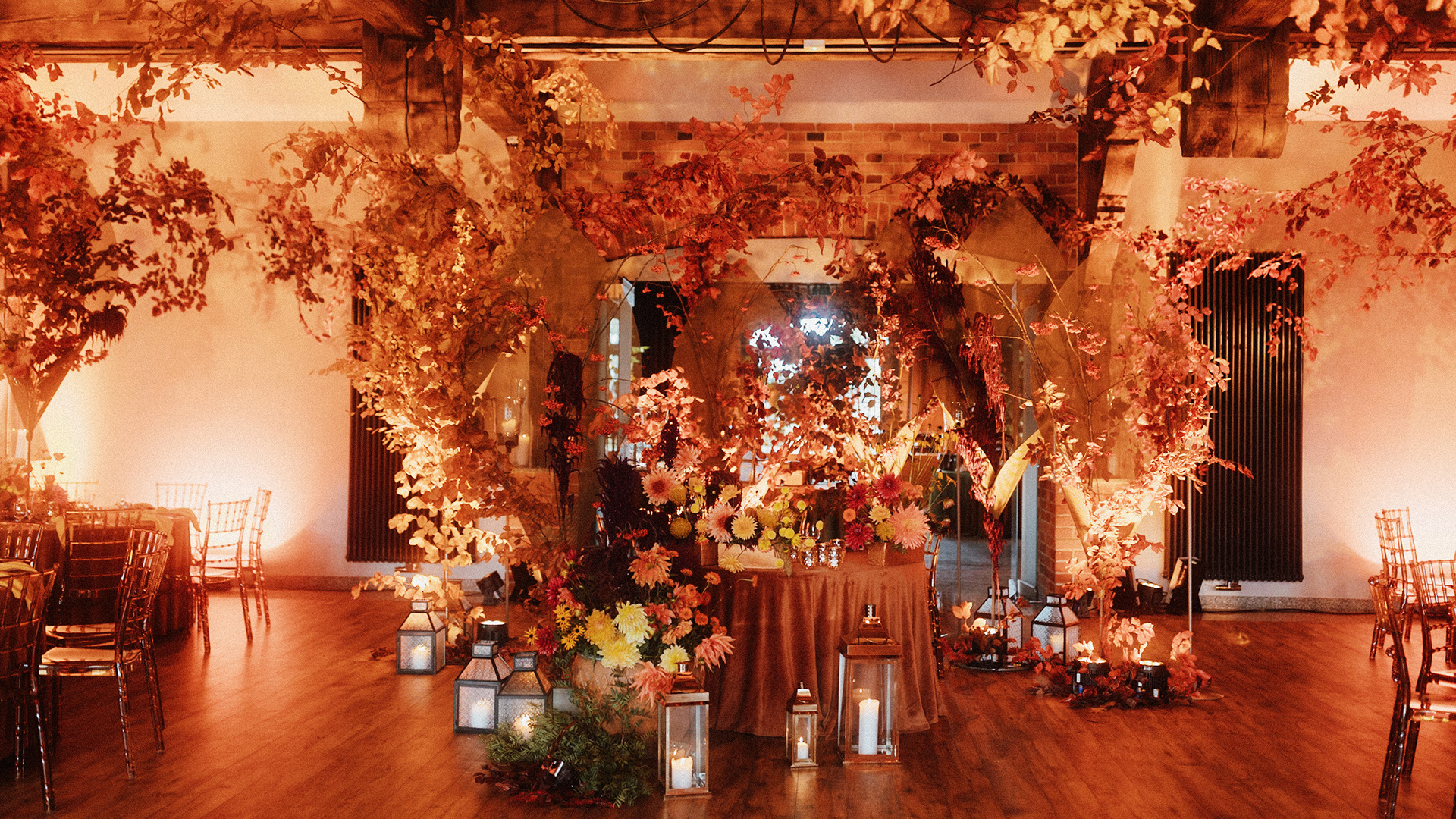 Jesień to liście i wiatr. Zrobiliśmy więc jedno i drugie, tworząc projekt, gdzie feeria barw: pomarańczu, czerwieni i żółci dosłownie fruwała dokoła budując klimat całej aranżacji.