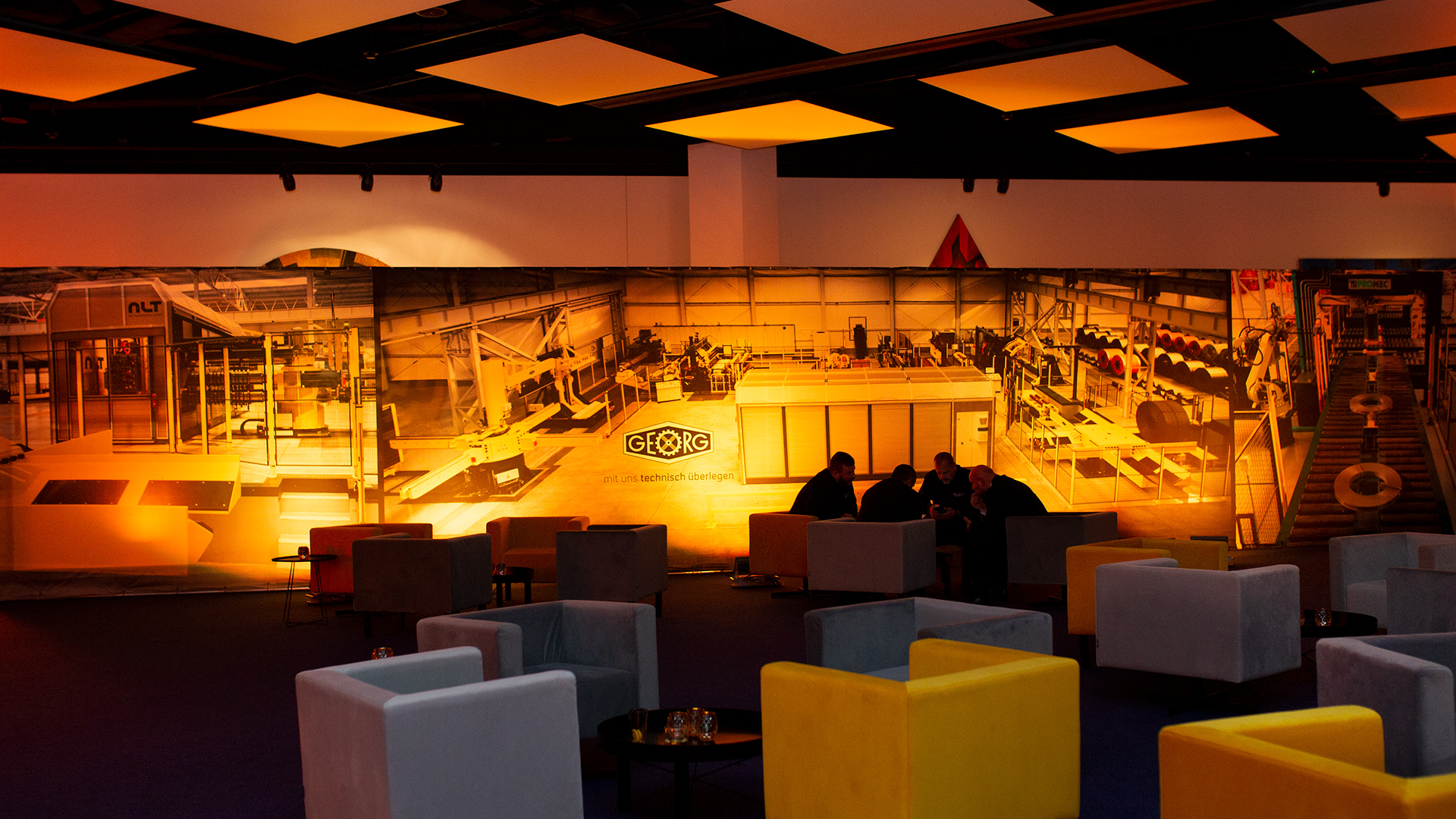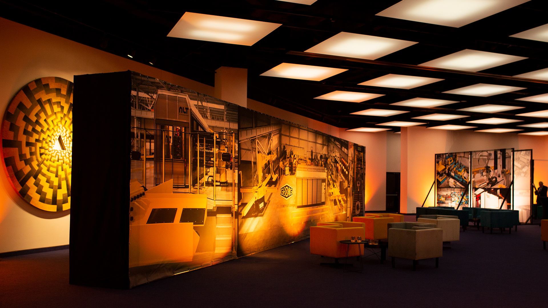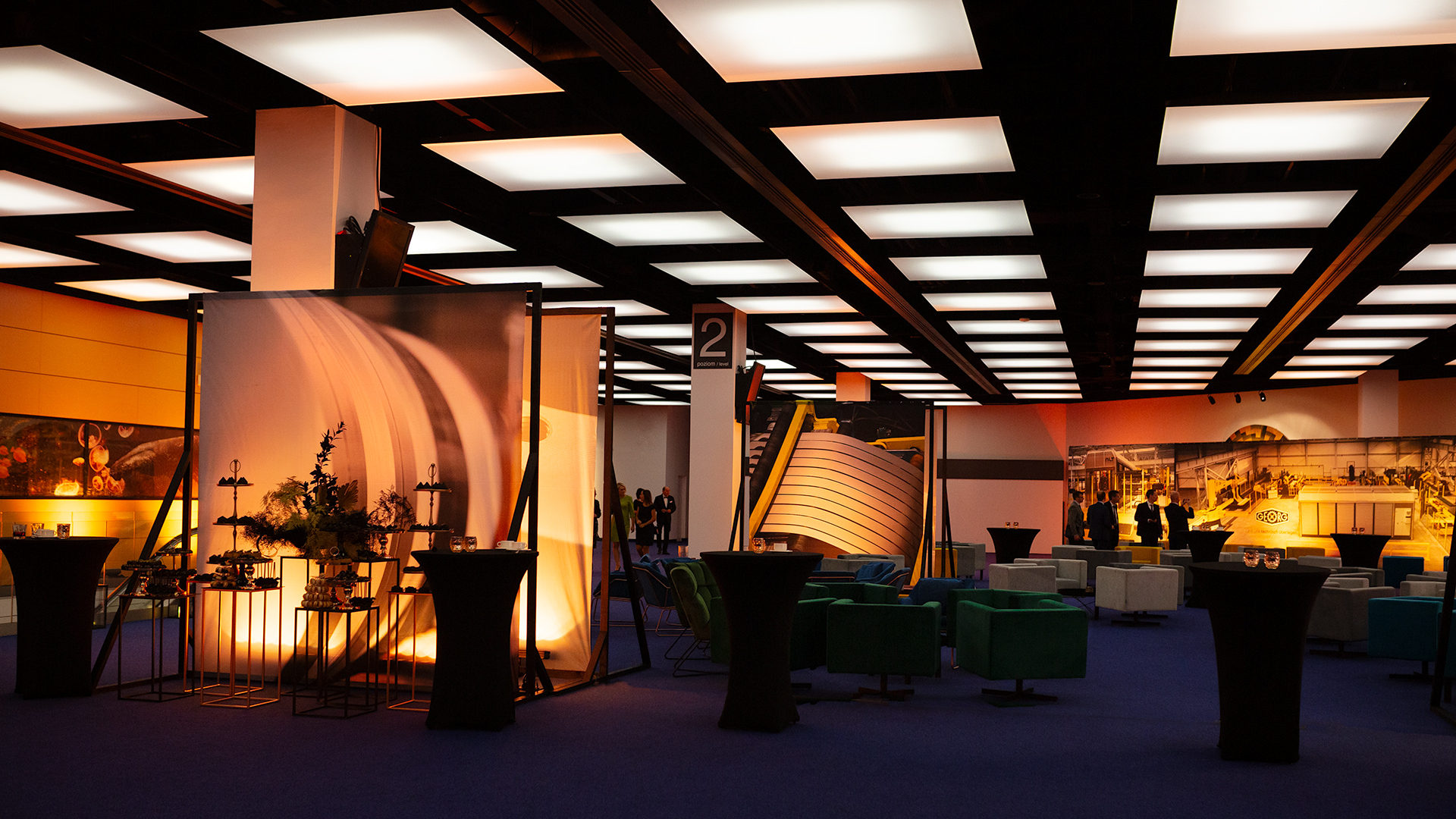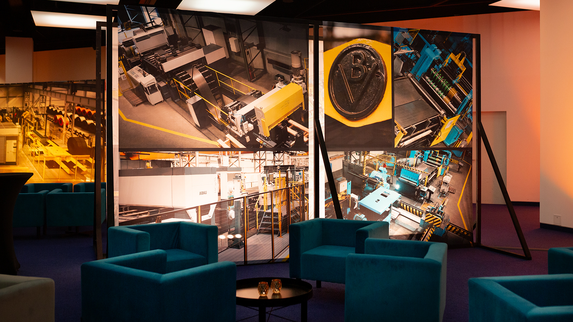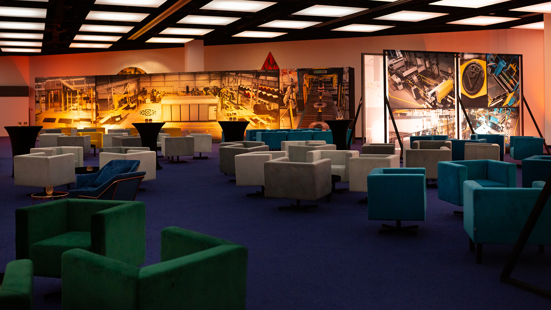 Event firmowy, w Sali Ziemia Poznań, ogromna przestrzeń i wydarzenie na 500 osób. Aranżacja dwustrefowa: foyer z ekspozycją produktów firmy, wykonanej jako aranżacja stref chillout, rodzaj wernisażu, przewymiarowanej galerii, dance floor oraz DJ. Druga strefa to ogromna scena, oraz stoły dla gości i gala główna. Projekt z użyciem dużej ilości stalowych elementów oraz dedykowanych printów i dobrego scenariusza oświetleniowego.