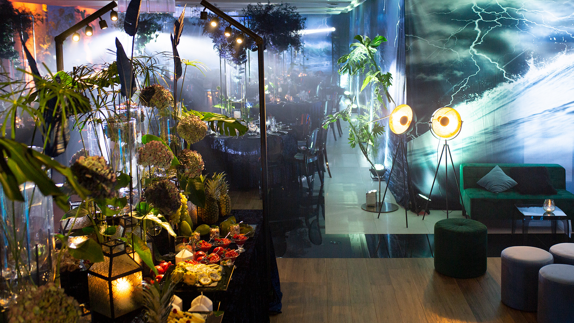Męski koncept scenograficzny, florystyczny, dżwiękowy i filmowy - pobudzający wszystkie zmysły. To projekt urodzinowy dla mężczyzny, który lubi rządzić nieco z oddali, pokazując siłę i luksus w eleganckim wydaniu. To balans między ciszą a uderzeniem pioruna.