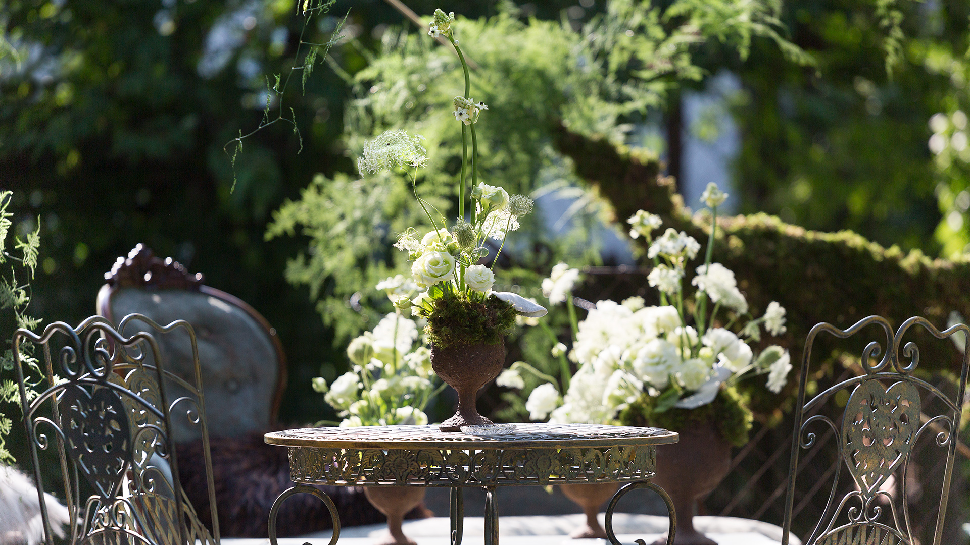 z wykorzystaniem prawdziwych antyków oraz florystyki wykonanej wyłącznie z rodzimych, polskich roślin i kwiatów.